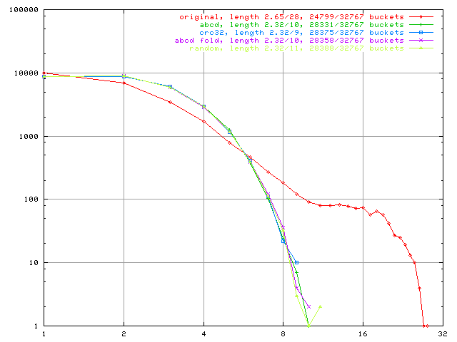 Bucket size 32769, all hashes