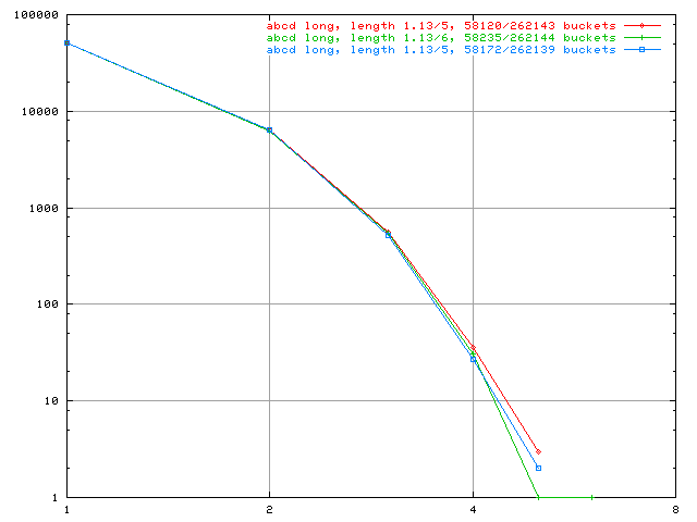 Hash abcd, bucket sizes 262143 262144 262139